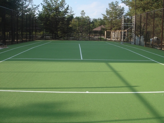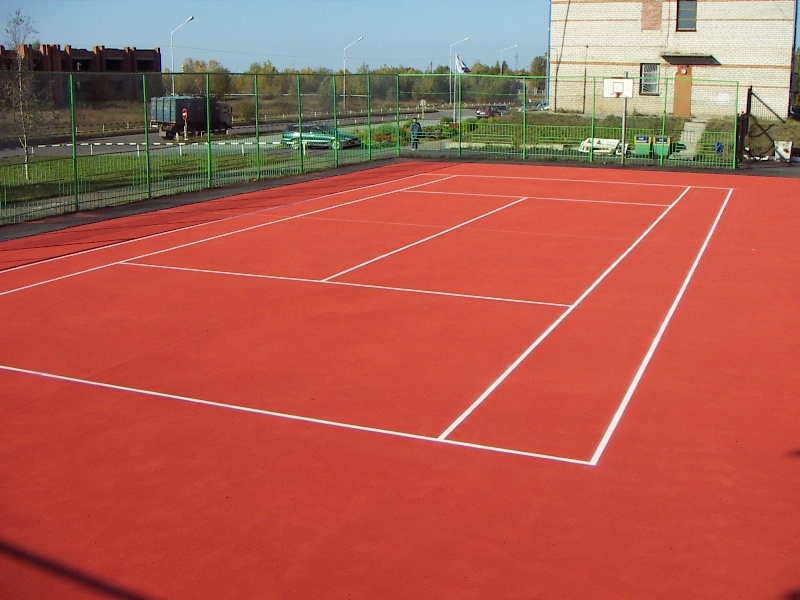 Двошарове спортивне водопроникне покриття з гумової крихти у нижньому шарі 8 мм, та каучукової крихти у верхньому 5 мм, з додатковими властивостями пружності. Виготовляється на об’єкті методом наливної підлоги. За рахунок фінішного шару з каучукової крихти майданчик має дуже яскравий зовнішній вигляд і має відмінні ігрові властивості.